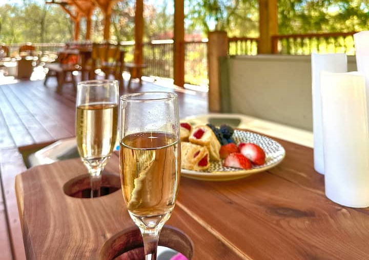 Epic deck is the perfect description for this place! Even with the cold, wet weather we were still able to get out and enjoy the space, the tv, the hot tub. Beautiful scenery from every view. Peaceful, quiet location. Plenty to keep the kids and adults busy or even plenty of places to just sit and relax. We are already planning our next visit back! Highly recommend.